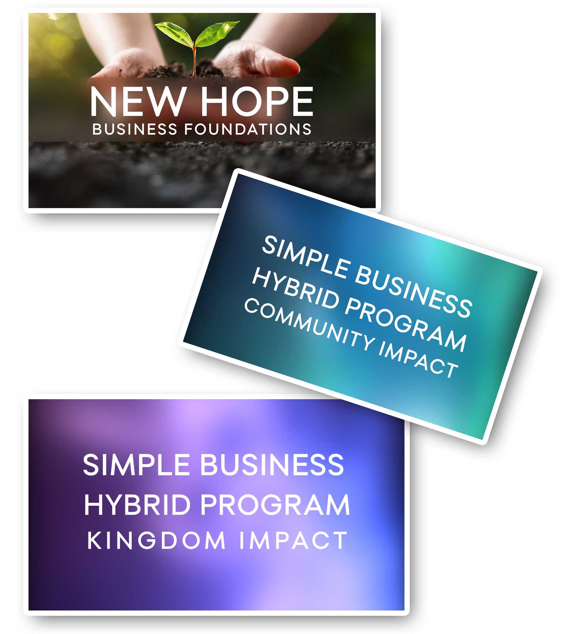 For the first time, bundle New Hope Business Foundations ( low-literacy track) + Simple Business Hybrid Course (middle-school and above track) and equip your team to serve the most vulnerable all the way up to ambitious small-business owners.